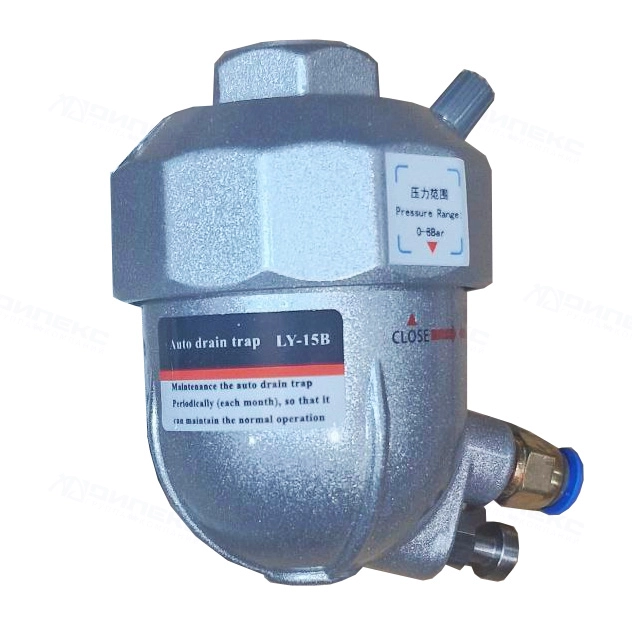 Конденсатоотводчик B02 устанавливается на штатный дренажный штуцер фильтра или сепаратора вместо заводской заглушки. Монтаж не требует специального инструмента или дополнительных компонентов.