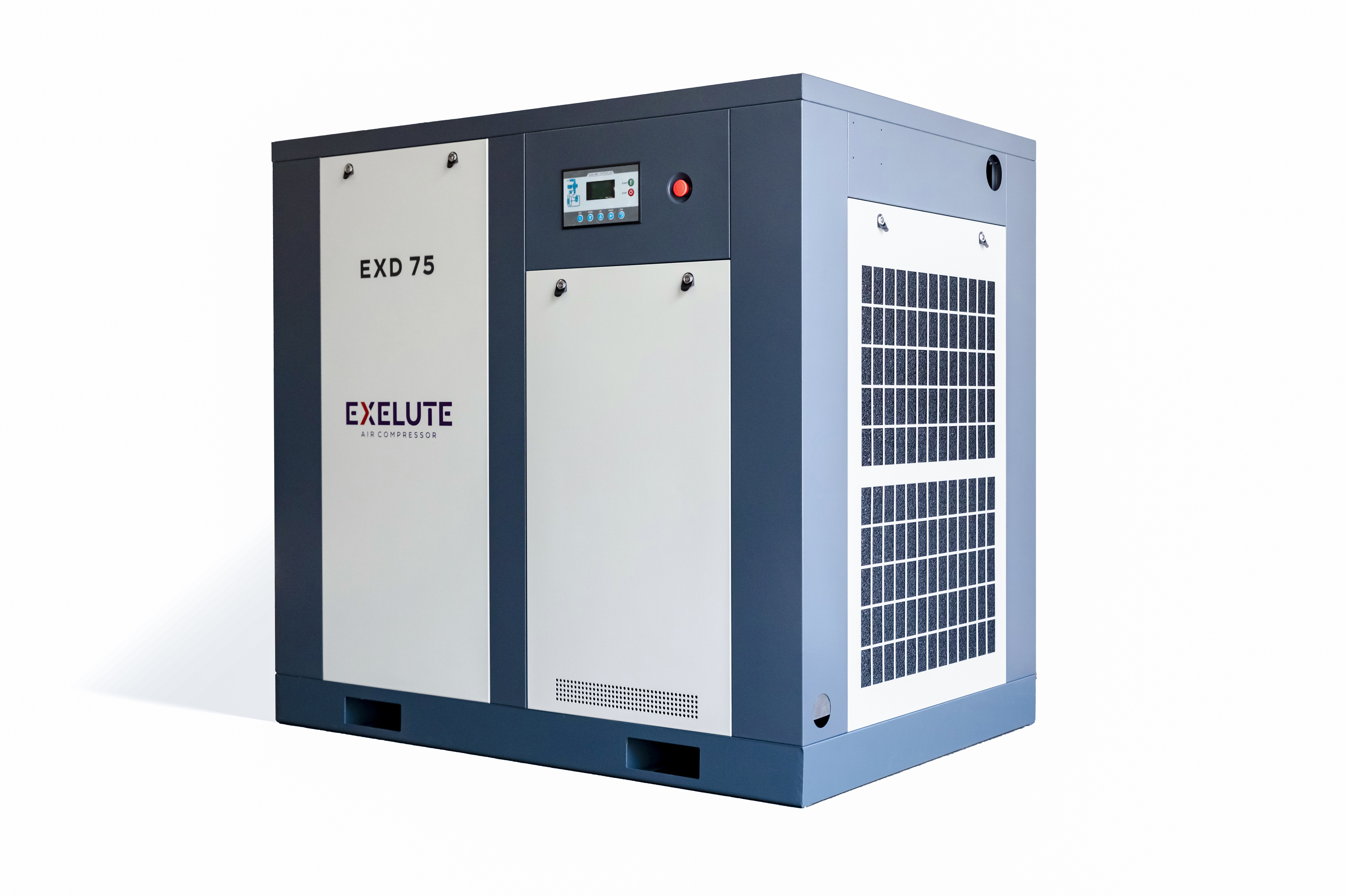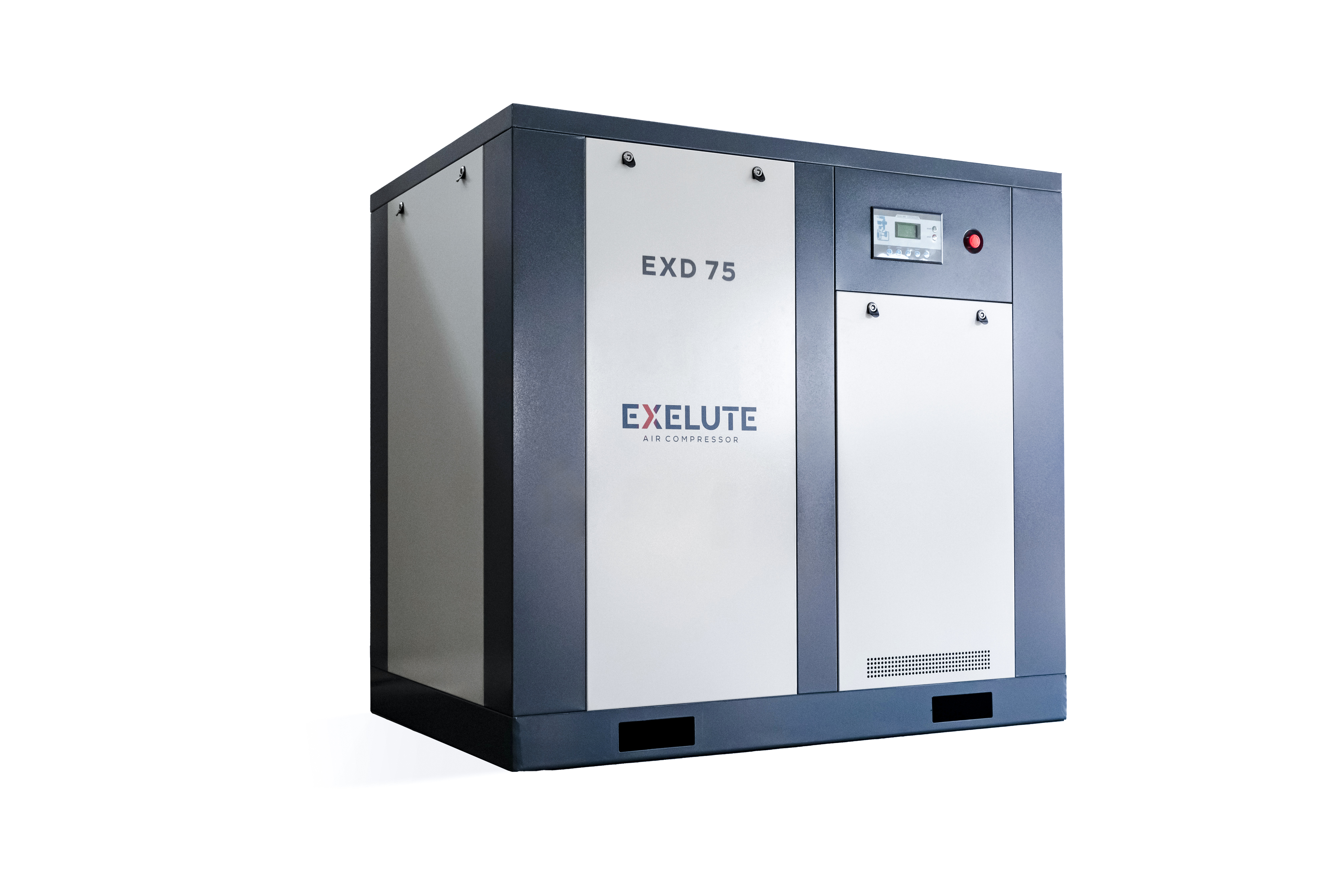Винтовые компрессоры EXELUTE серии EXV с частотным преобразователем — это надёжный и неприхотливый источник сжатого воздуха. Компрессоры Данной серии являются базовыми моделями в линейке EXELUTE. Несмотря на это, конструкция компрессоров EXV имеет ряд преимуществ перед конкурентами. Частотный преобразователь в составе компрессора позволяет регулировать обороты электродвигателя и винтового блока. Тем самым меняется производительность компрессора, в зависимости от потребления сжатого воздуха. При снижении потребления, скорость вращения снижается, а вместе с ней снижается производительность и потребление электроэнергии. Скорость вращения автоматически выбирается системой управления так, чтобы компрессор поддерживал постоянный поток сжатого воздуха, при заданном Давлении. Регулирование производительности компрессора позволяет экономить до 35% электроэнергии, затрачиваемой на производство сжатого воздуха. Модельный ряд EXV закрывает диапазон мощности от 5,5 до 355 кВт. Серия компрессоров EXV с частотным преобразователеми способна удовлетворить потребности в сжатом воздухе любого предприятия от небольшой мастерской до крупных производств.